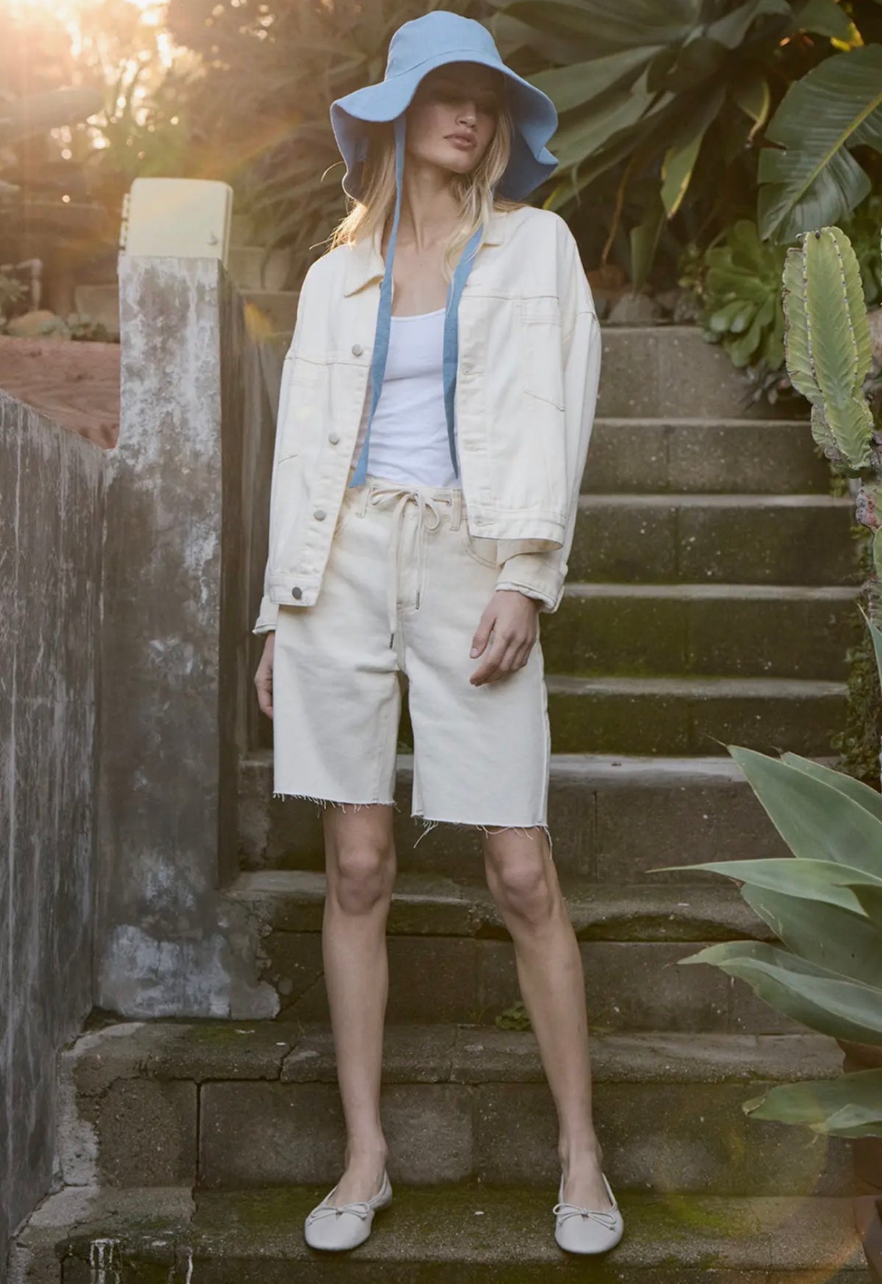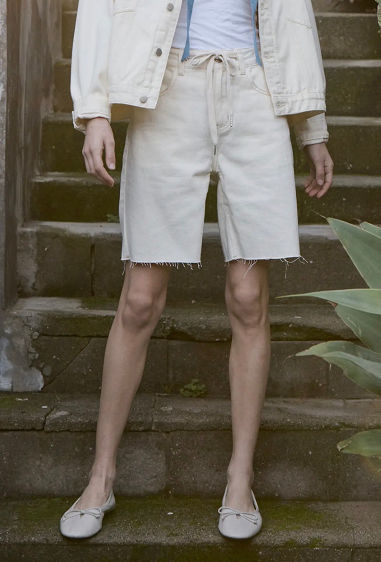 Regular price $99.00Clean, effortless, and seasonless - these minimal cut off denim shorts feature a relaxed straight fit with a raw hem finish and a subtle drawstring waist detail for a modern utilitarian tough.