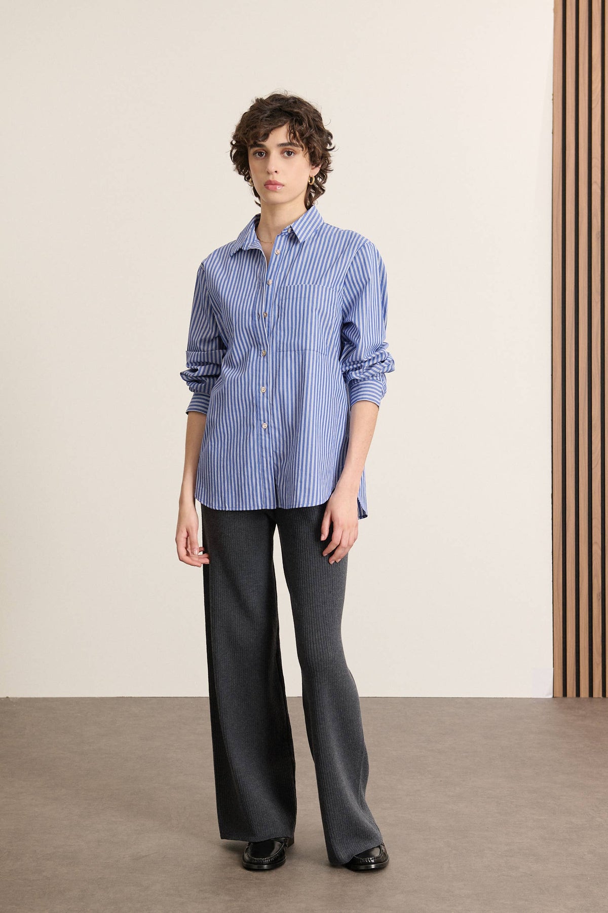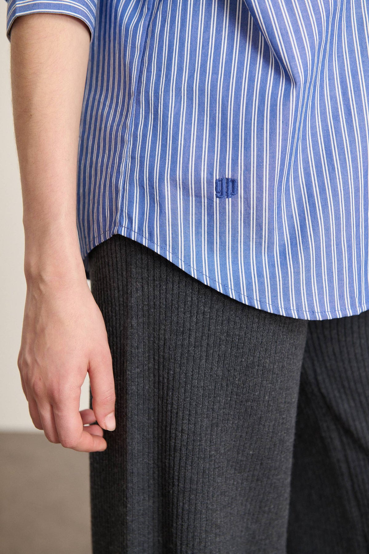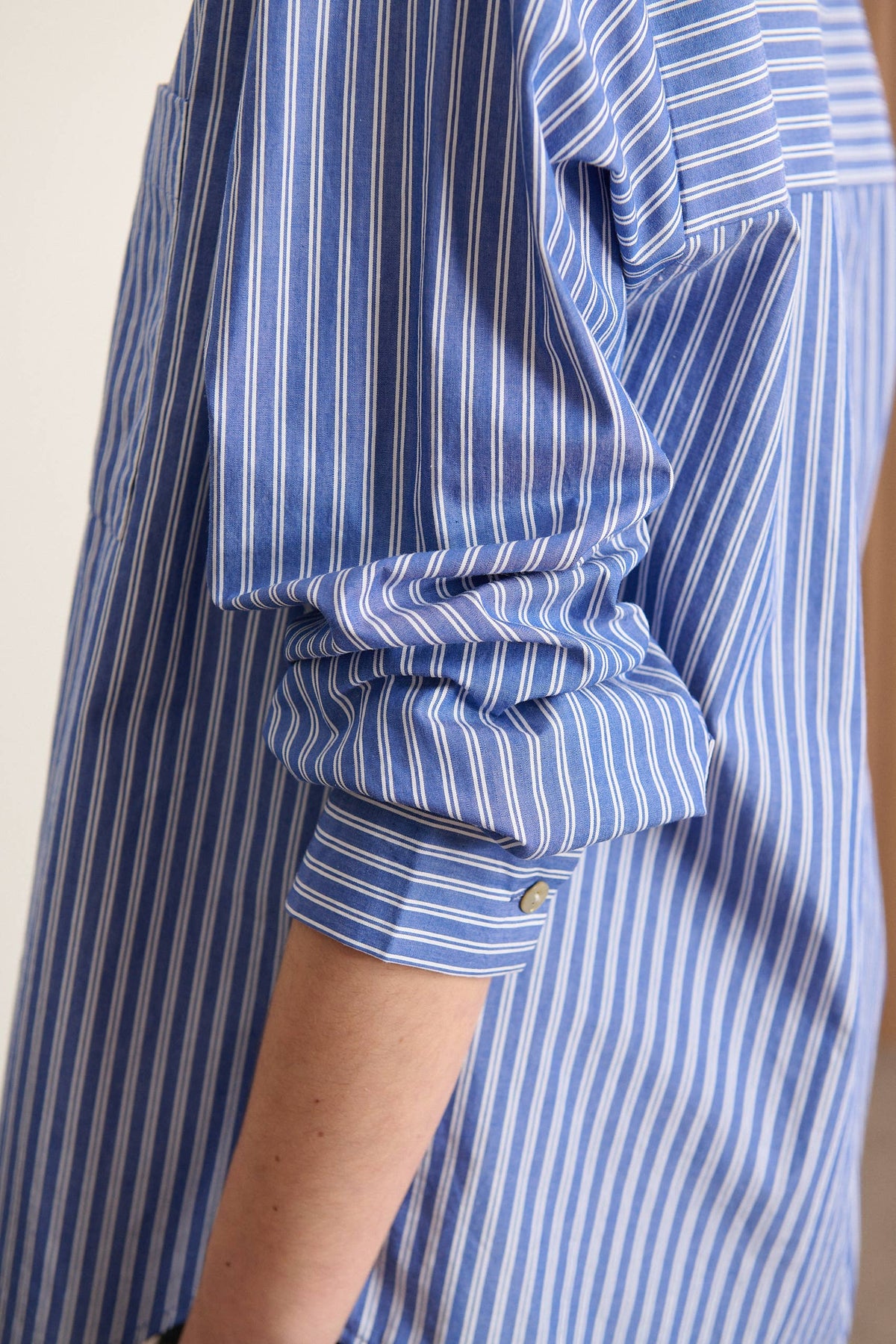 Regular price $195.00Expertly designed with a slightly oversized fit, the Ted Striped Shirt offers both style and comfort. Made from soft cotton poplin, this classic collar shirt features long sleeves and a convenient chest pocket. Look sharp and feel confident in this timeless wardrobe essential.