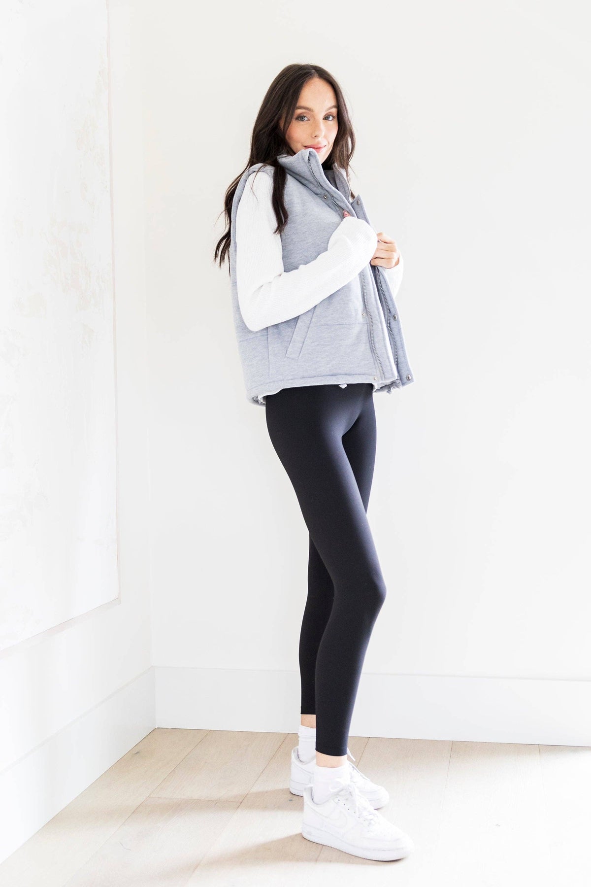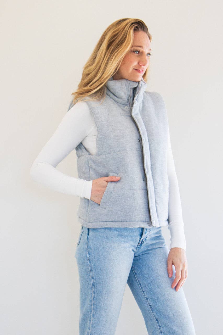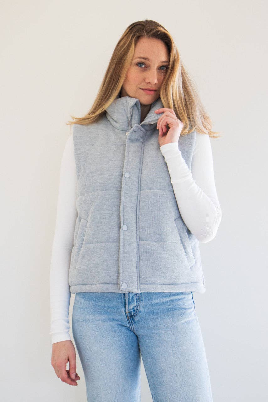 Transition into the cold with The Cora Knit Puffer Vest. Featuring plush fabric, a high-neck rise, and slightly cropped fit, this is not your average winter vest. Layer it over your favorite long-sleeve tee or dress it up with a button-down for effortless seasonal style. The soft texture keeps you cozy while the modern silhouette adds an edge to any outfit. Perfect for those crisp days when you want warmth without the bulk.