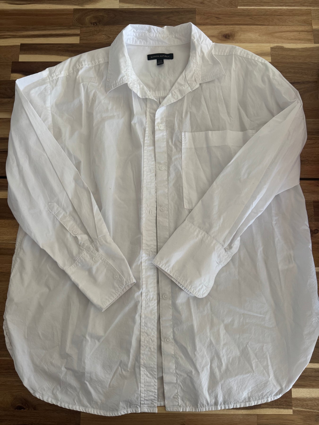 Regular price $160.00 Sale price $50.00 Save $110.00White cotton poplin button up from Banana Republic